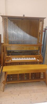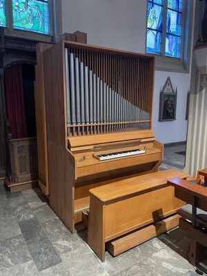 There are constantly about 15 pipeorgans on display in our showroom at Trinitatis church in Wuppertal, Germany. Interested customers are invited to try out these instruments in our unique church hall with matching acoustics.