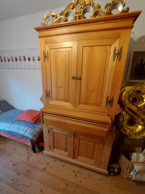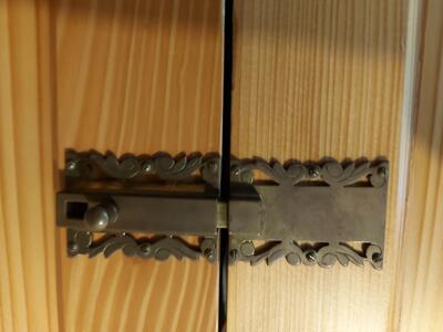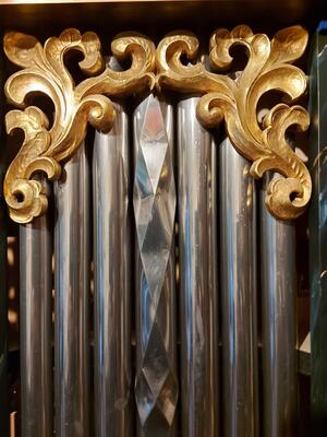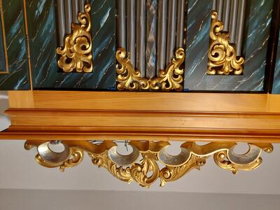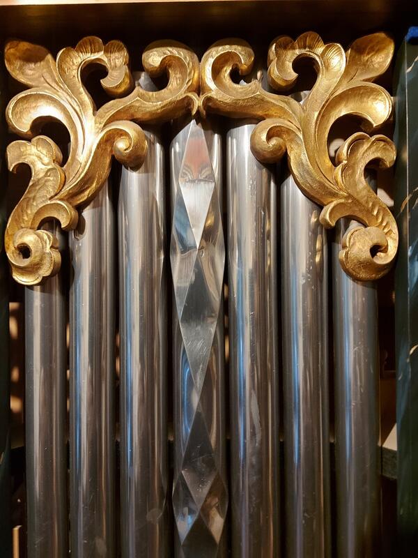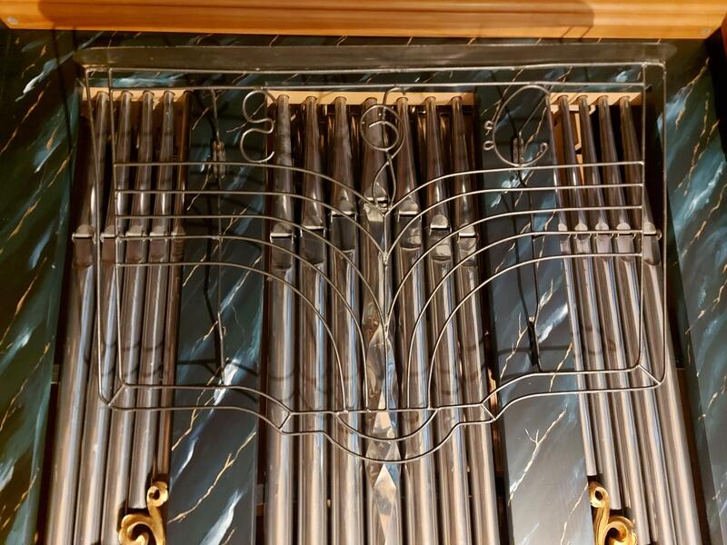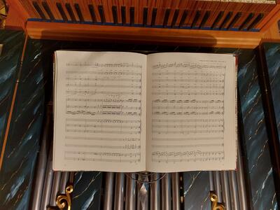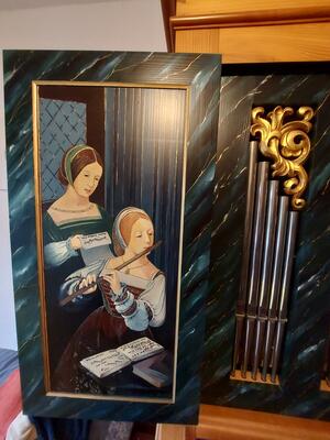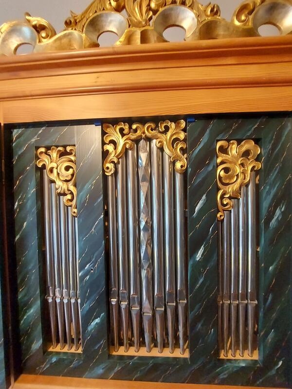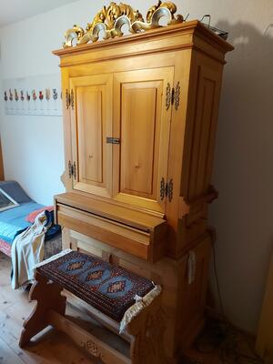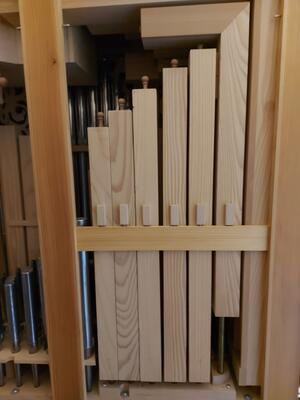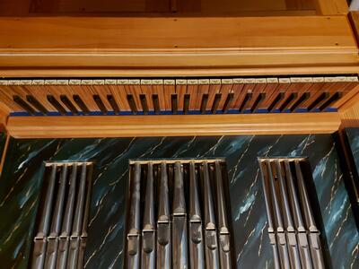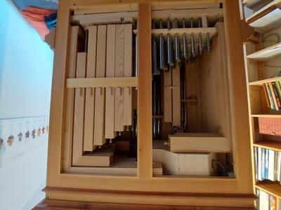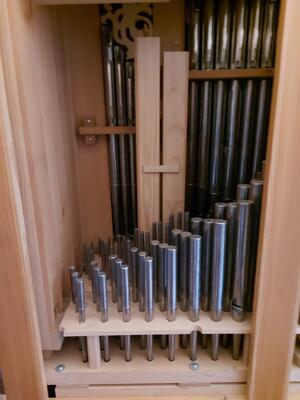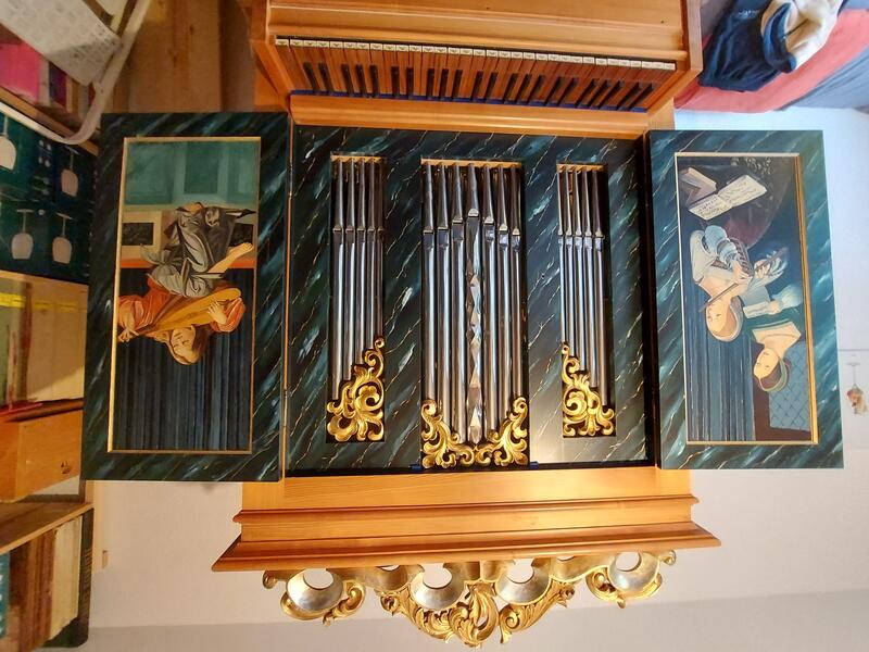 Il positivo dell'organo si trova su un mobiletto per spartiti e può essere arrotolato.
