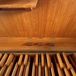 Diese Truhenorgel wurde speziell auf eine hohe Tragfähigkeit und Fülle im Klang ausgerichtet, ohne dabei auf einen lebendigen Ton mit schneller Entfaltung zu verzichten. Die feine handgeschnitzte Ornamentik unterstreicht die hohe Handwerklichkeit des Instrumentes und bildet neben den ziselierten Prospektpfeifen des Principal 2' einen noblen Kontrast.